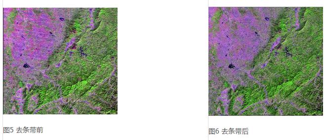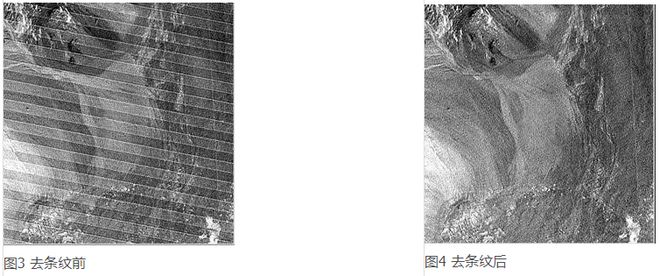 (2)除坏线和条带去除遥感图像中的坏线。遥感图像中通常会出现与扫描方向平行的条带,还有一些与辐射信号无关的条带噪声,一般称为坏线。一般采用傅里叶变换和低通滤波进行消除或减弱。