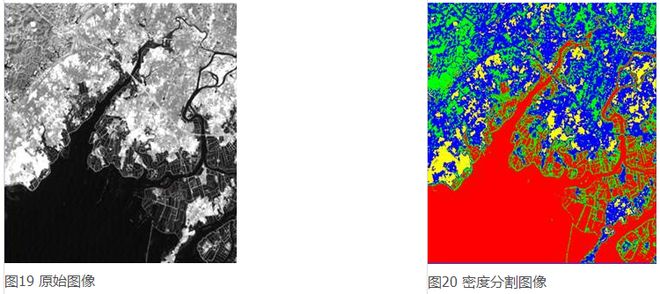 3.密度分割将灰度图像按照像元的灰度值进行分级,再分级赋以不同的颜色,使原有灰度图像变成伪彩色图像,达到图像增强的目的。