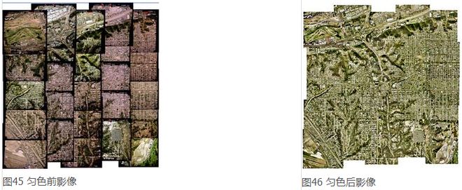 2.影像匀色在实际应用中,我们用来进行图像镶嵌的遥感影像,经常来源于不同传感器、不同时相的遥感数据,在做图象镶嵌时经常会出现色调不一致,这时就需要结合实际情况和整体协调性对参与镶嵌的影像进行匀色。