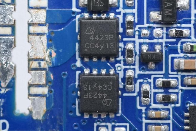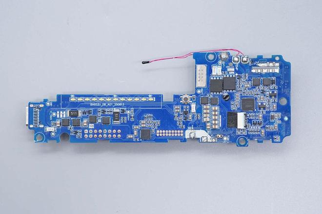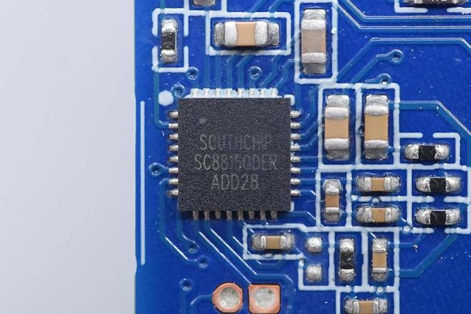 PCBA模块采用三板双层设计,其中电源模块采用了南芯科技POWERQUARK®高集成度芯片方案。此外还采用南芯科技SC8815、SC8726A电源管理芯片搭配现代单片机A94P830KUN协议芯片实现两个USB-C接口的充放电控制。还采用了重庆万国多款功率器件,东佳、绿宝石电容滤波,模块打胶以及贴泡棉等辅助散热和抗摔,用料做工都很讲究。