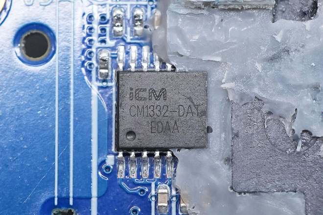 充电头网通过拆解了解到,移动电源电池组由长虹三杰三颗INR18650-3000动力电芯组成,通过了国家3C强制认证,并配备创芯微CM1332-DAT锂电保护芯片以及热敏电阻实现温控和过充过放等保护。