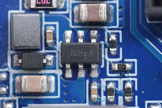 同步降压转换器来自SILERGY矽力杰,丝印Iu,型号SY8301,芯片内部集成开关管,输入电压最高40V,输出电流1A,采用SOT23-6封装。