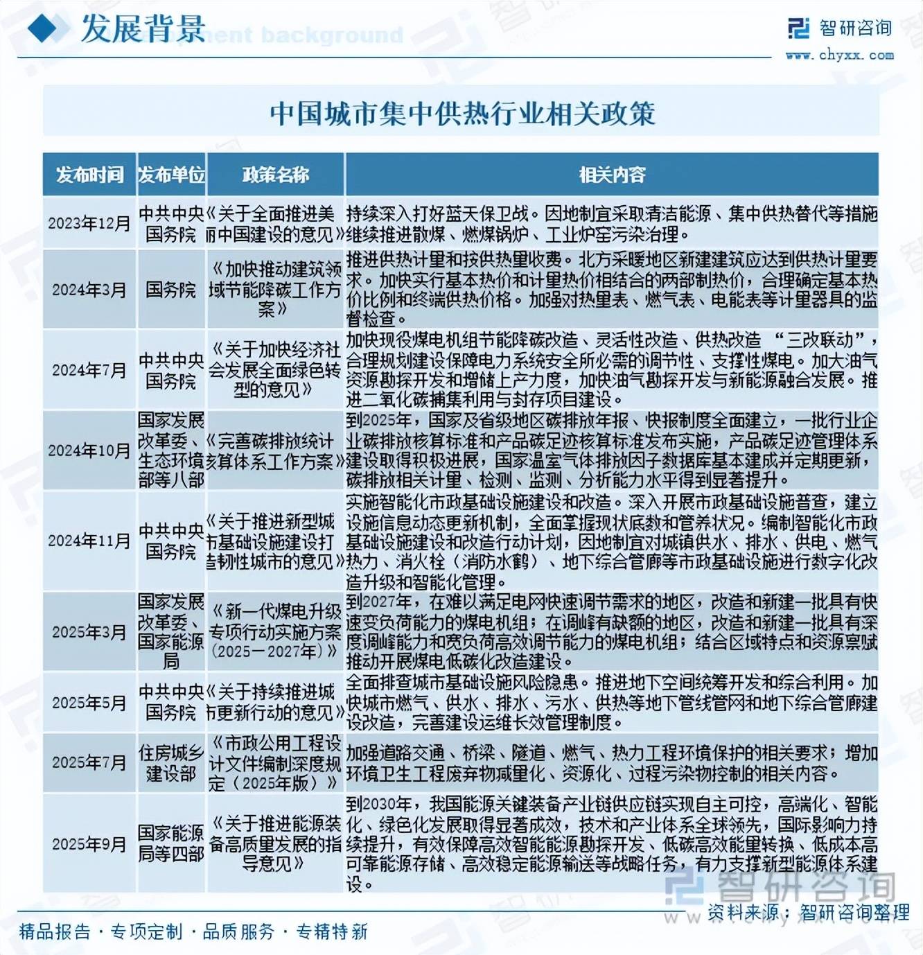 了解更多城市集中供热行业的深度研究分析和全面数据,请关注智研咨询发布的《中国城市集中供热行业市场运行态势及发展前景研究报告》。本《报告》从2025年全国城市集中供热行业发展环境、整体运行态势、运行现状、进出口、竞争格局等角度进行入手,系统、客观的对我国城市集中供热行业发展运行进行了深度剖析,展望2025年中国城市集中供热行业发展趋势。《报告》是系统分析2025年度中国城市集中供热行业发展状况的著作,对于全面了解中国城市集中供热行业的发展状况、开展与城市集中供热行业发展相关的学术研究和实践,具有重要的借鉴价值,可供从事城市集中供热行业相关的政府部门、科研机构、产业企业等相关人员阅读参考。